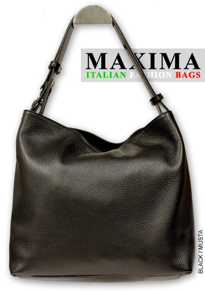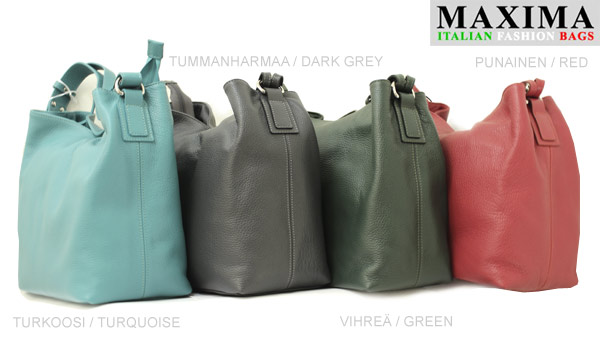 Maxima naisten nahkainen olkalaukku D3377. laukussa vetoketjutaskullinen keskijakaja ja laukun sisällä reunassa vetoketjutasku ja avotasku esim. puhelimelle. Kuvassa oleva hihna on kaksinkerroin jolloin se toimii käsilaukun hihnana, hihnan saa pidennetyä kaksi kertaa pidemmäksi. Nahkalaukku on aitoa nahkaa ja tehty Italiassa.