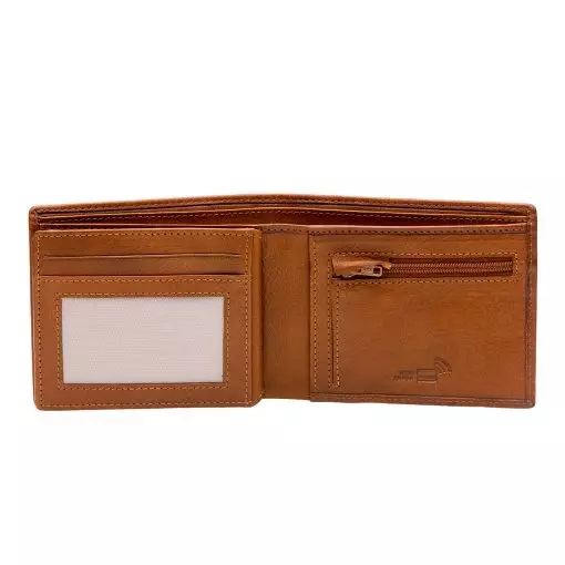 Vaakamallinen klassinen nahkalompakko. Nepparilla suljettava ensimmäinen välikkö jossa kahdeksan korttipaikkaa ja pari muuta väliä. Toisessa välikössä ikkunallinen korttipaikka, tavallinen korttipaikka, pari muuta väliä sekä vetoketjullinen pieni kolikkotasku. Taustalla kaksiosainen seteliväli. Lompakossa on RFID-suojaus joka estää lähimaksukorttien etäluvun. Mitat 11 x 9,5 cm.