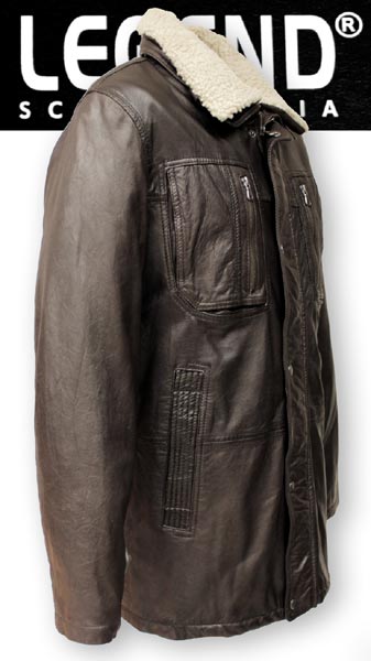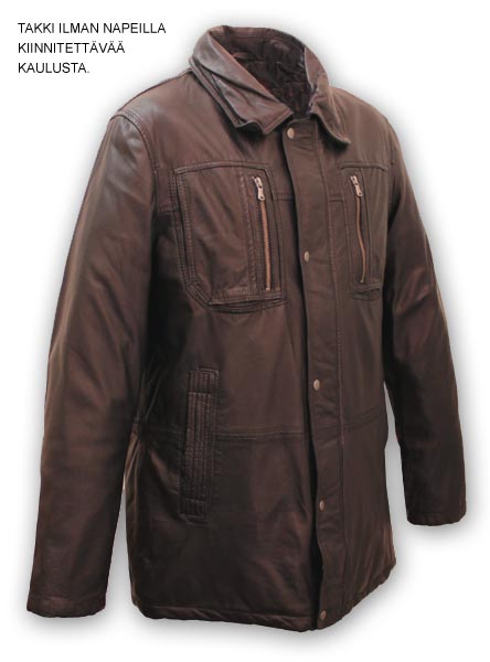 Miesten nahkatakki karvakauluksella Legend Golf 20160. Nahka aitoa lammasnappaa. Kaulus lämmintä lampaankarvaa, kauluksen saa irroitettua, nappikiinnitys.